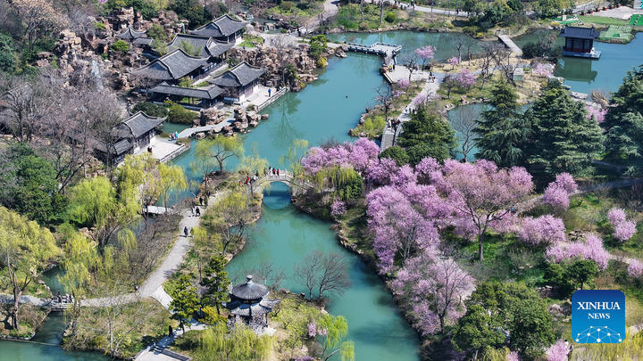 An aerial photo taken on March 19, 2025 shows the scenery of Slender West Lake scenic spot in Yangzhou, east China's Jiangsu Province. (Photo by Qi Liguang/Xinhua)