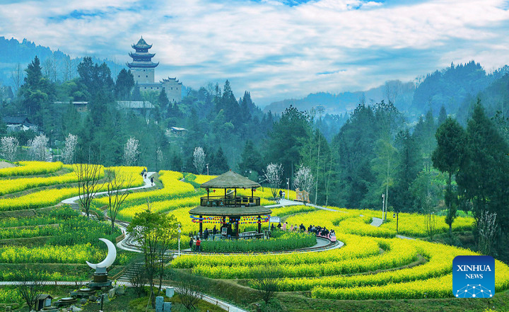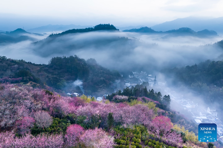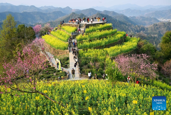 Visitors enjoy flowers at Shitan Village in Shexian County, Huangshan City of east China's Anhui Province, March 26, 2025. (Xinhua/Zhou Mu)