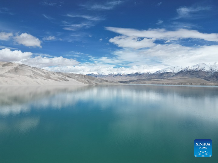 This photo taken on May 19, 2024 shows a view of the Baisha Lake scenic area in Akto County, northwest China's Xinjiang Uygur Autonomous Region. May 19 marks the China Tourism Day. (Xinhua/Dai Ziluan)