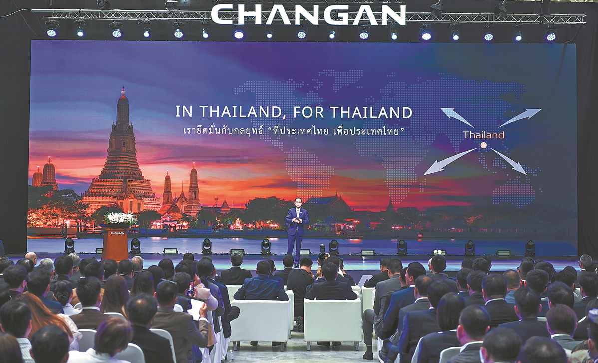 Changan Chairman Zhu Huarong introduces the company's first overseas new energy vehicle plant in Thailand on May 16. CHINA DAILY