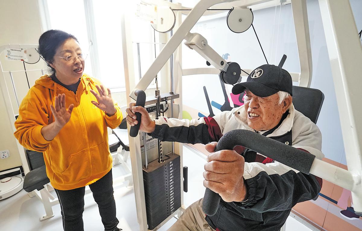 A man exercises at an elderly care guidance center in the capital's Dongcheng district on Oct 31. (Li Xin/Xinhua)
