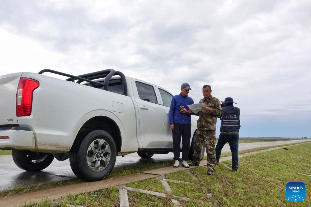 Staff members conduct regular field patrol at the Bachadao National Nature Reserve in Tongjiang, northeast China's Heilongjiang Province, May 19, 2025. Recently, northbound migratory birds have entered their breeding season at the reserve, a critical habitat and stopover site, where ongoing wetland restoration efforts have ensured food resources and habitats for these avian travelers. (Photo by Liu Wanping/Xinhua)