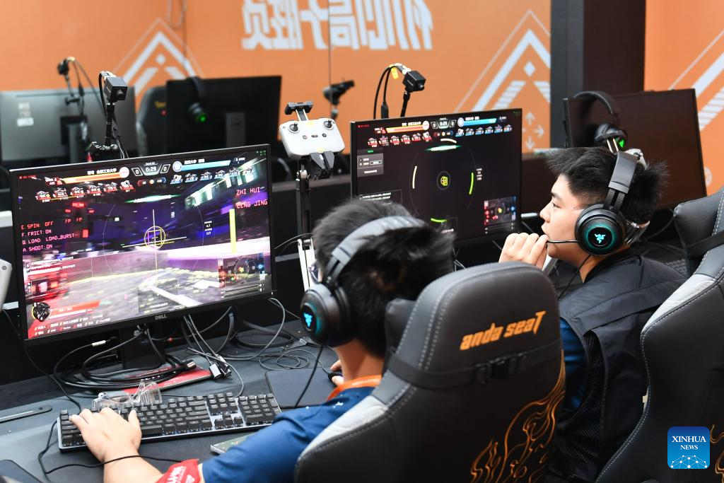 Contestants from Hefei University of Technology operate their robots during the RoboMaster 2025 University Championship Regional Competition in Changsha, central China's Hunan Province, May 21, 2025. The five-day regional competition kicked off here on Wednesday, attracting teams from 32 universities of China. (Xinhua/Chen Zhenhai)