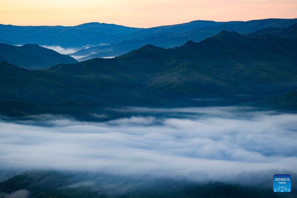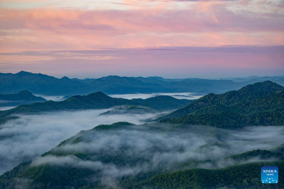 This photo taken on May 21, 2025 shows a sea of clouds seen from the Jinzu Peak in Yichun, northeast China's Heilongjiang Province. Jinzu Peak scenic area attracts numerous tourists with its stunning sunrise and sea of clouds. (Xinhua/Xie Jianfei)