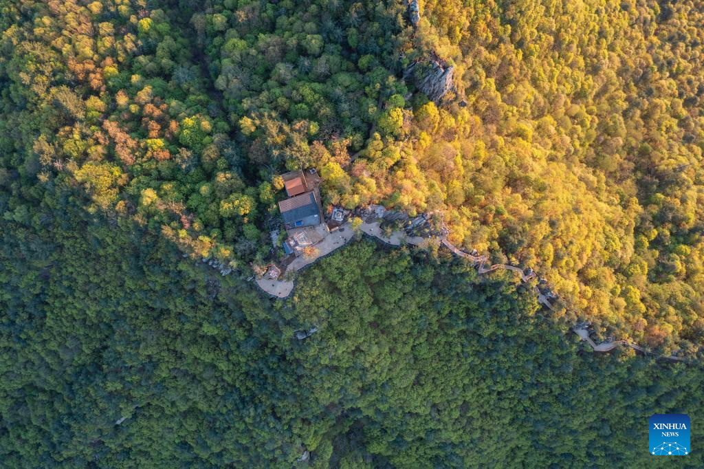 An aerial drone photo taken on May 21, 2025 shows tourists enjoying the sunrise at the Jinzu Peak in Yichun, northeast China's Heilongjiang Province. Jinzu Peak scenic area attracts numerous tourists with its stunning sunrise and sea of clouds. (Xinhua/Xie Jianfei)