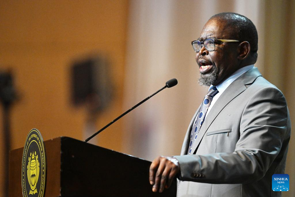 South African Finance Minister Enoch Godongwana delivers his 2025 budget speech in Cape Town, South Africa, on May 21, 2025. Godongwana re-tabled the 2025 Budget before the parliament on Wednesday, excluding the contentious value-added tax (VAT) increase and prioritizing social spending and economic growth while aiming to rein in public debt. (Photo by Xabiso Mkhabela/Xinhua)
