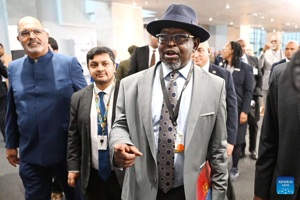 South African Finance Minister Enoch Godongwana (Front) arrives at the Cape Town International Convention Center to deliver his 2025 budget speech in Cape Town, South Africa, on May 21, 2025. Godongwana re-tabled the 2025 Budget before the parliament on Wednesday, excluding the contentious value-added tax (VAT) increase and prioritizing social spending and economic growth while aiming to rein in public debt. (Photo by Xabiso Mkhabela/Xinhua)