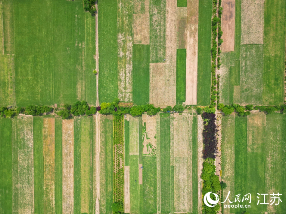 Photo shows an aerial view of turf planting bases in Qianchang village, Rugao, a county-level city in Nantong, east China's Jiangsu Province. (People's Daily Online/Wang Jiliang)