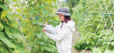 Li Jingwei evaluates the agronomic traits of germplasm samples. (Photo/Pei Yun)