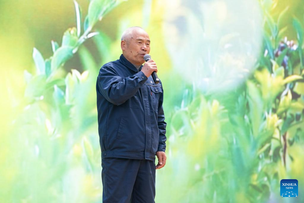 Zhang Daoting, a retired forestry worker, speaks during the International Day for Biological Diversity Event 2025 in Yichun City, northeast China's Heilongjiang Province, May 22, 2025. An International Day for Biological Diversity Event 2025 kicked off in Yichun on Thursday. Rich in forest resources, Yichun boasts biological diversity and beautiful scenery. (Xinhua/Xie Jianfei)