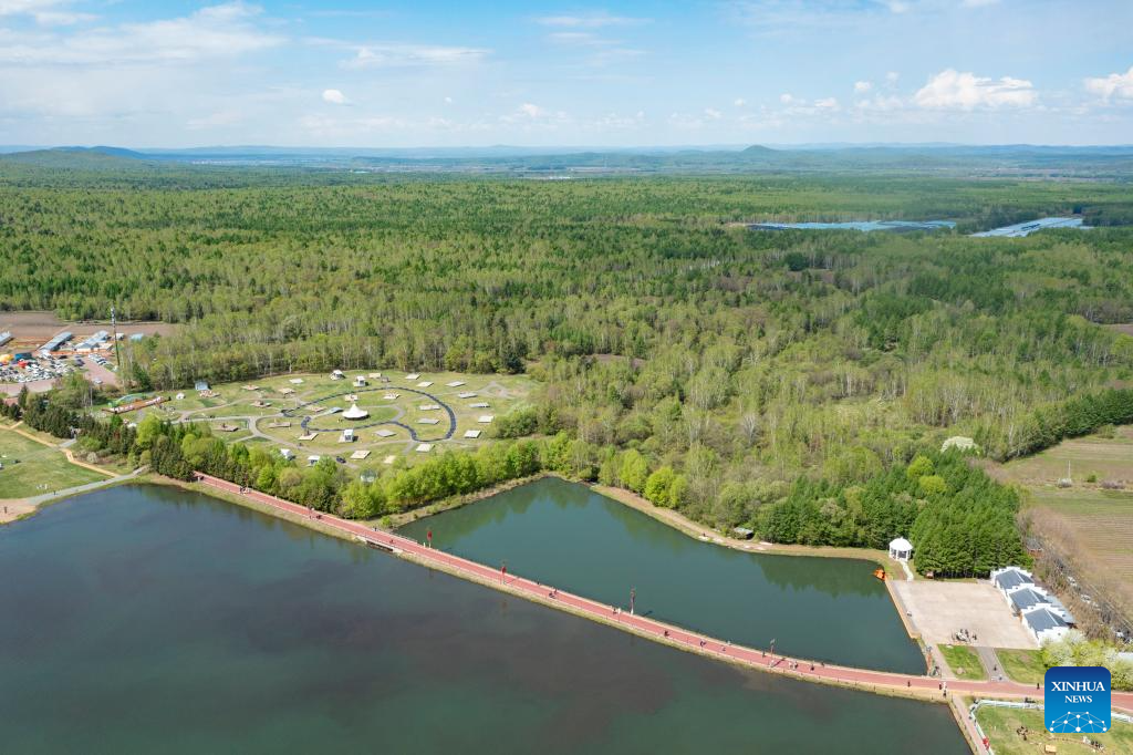 An aerial drone photo taken on May 22, 2025 shows the International Day for Biological Diversity Event 2025 in Yichun City, northeast China's Heilongjiang Province. An International Day for Biological Diversity Event 2025 kicked off in Yichun on Thursday. Rich in forest resources, Yichun boasts biological diversity and beautiful scenery. (Xinhua/Xie Jianfei)