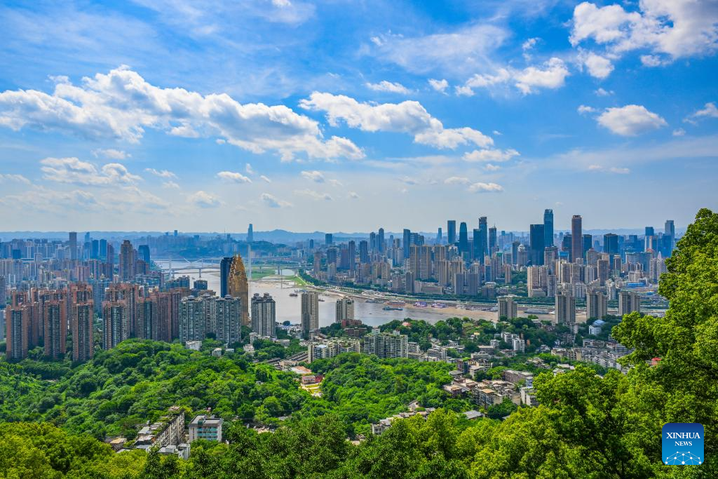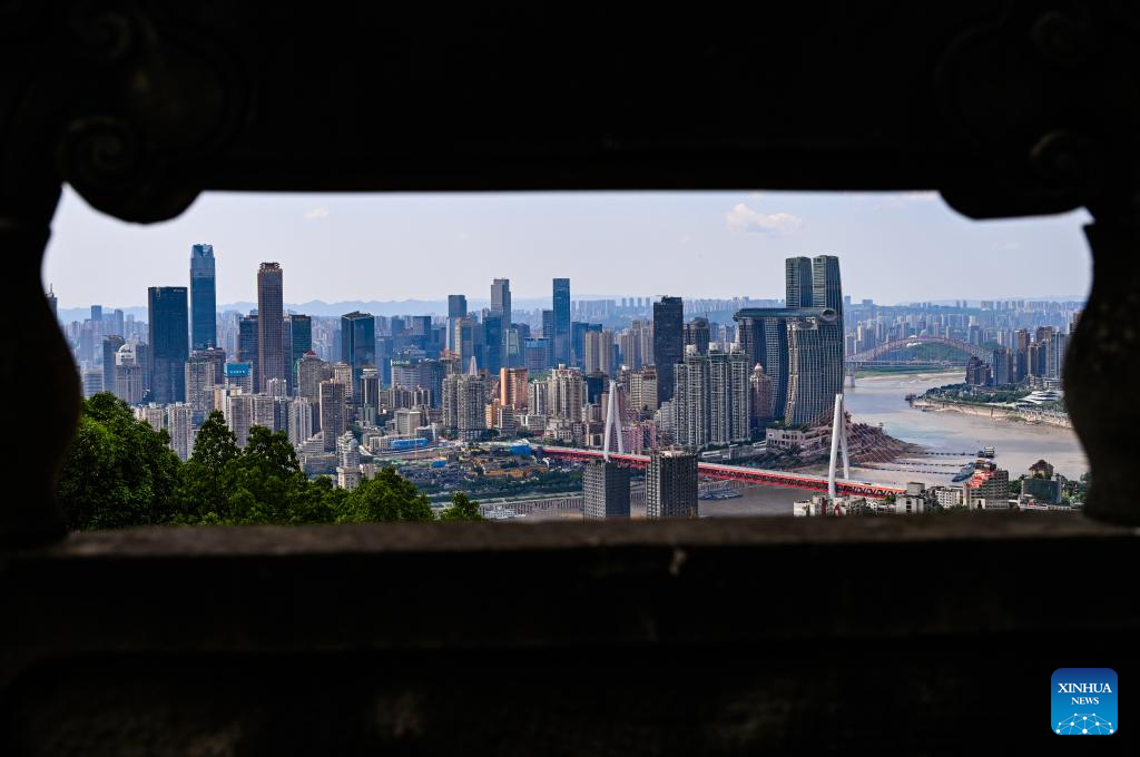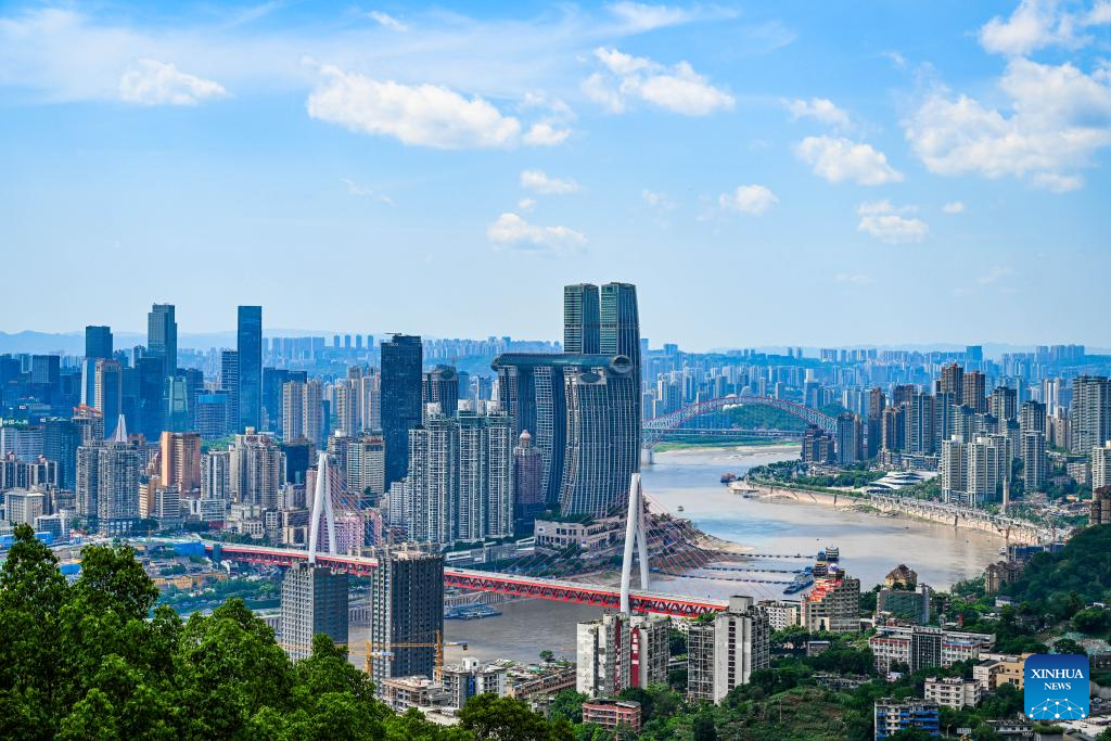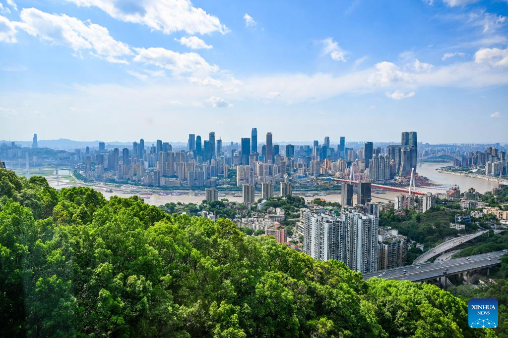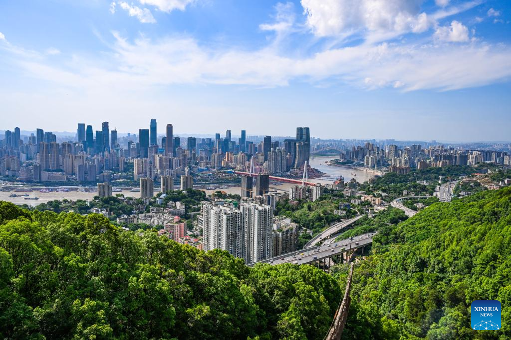 This photo taken on May 22, 2025 shows a view of Chongqing Municipality, southwest China. In recent years, Chongqing has revitalized its riverfronts along the Yangtze and Jialing Rivers, integrating nature and urban development to showcase its iconic landscape featuring mountains, rivers, cityscape and bridges. (Xinhua/Wang Quanchao)