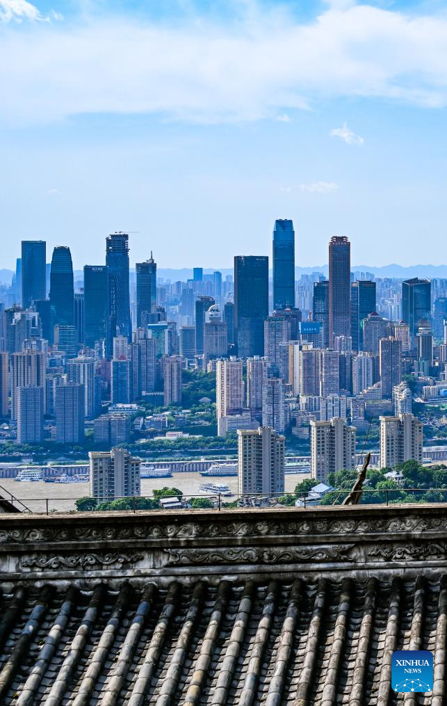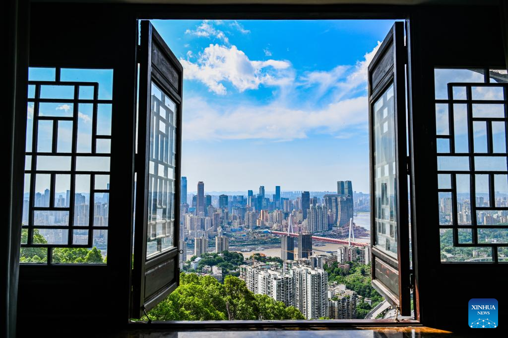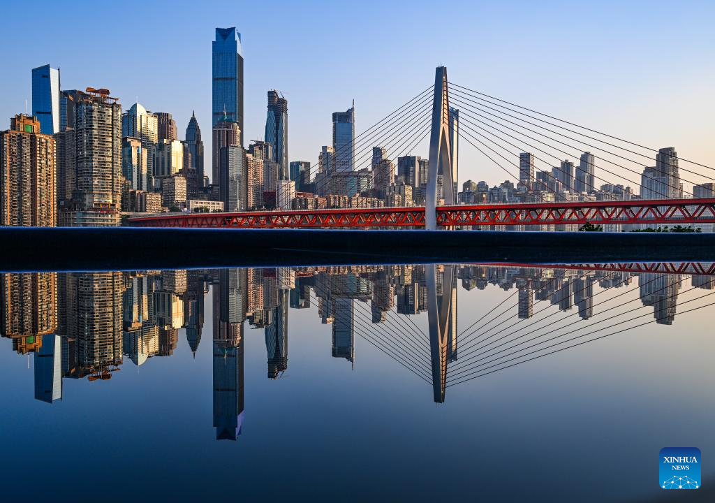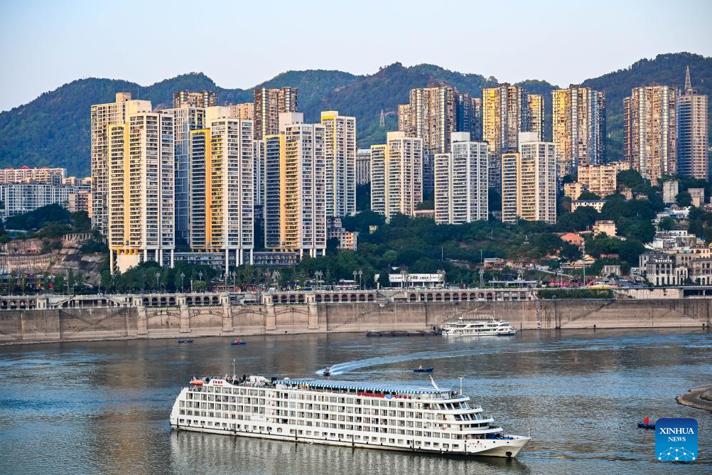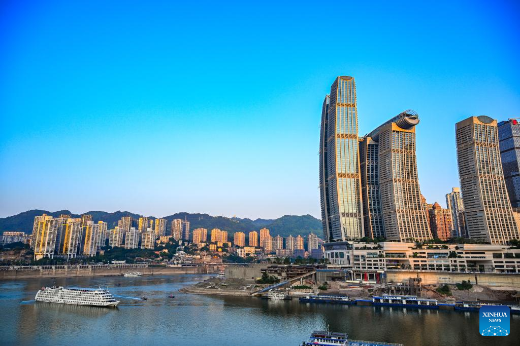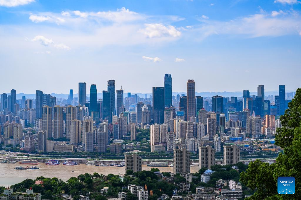 This photo taken on May 22, 2025 shows a view of Chongqing Municipality, southwest China. In recent years, Chongqing has revitalized its riverfronts along the Yangtze and Jialing Rivers, integrating nature and urban development to showcase its iconic landscape featuring mountains, rivers, cityscape and bridges. (Xinhua/Wang Quanchao)