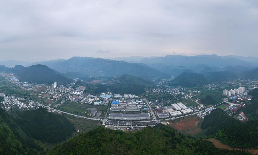 An aerial drone photo taken on May 14, 2025 shows the industrial park of Guizhou Gui Tea Group Co., Ltd. in Jiangkou County, southwest China's Guizhou Province. (Xinhua/Yang Wenbin)