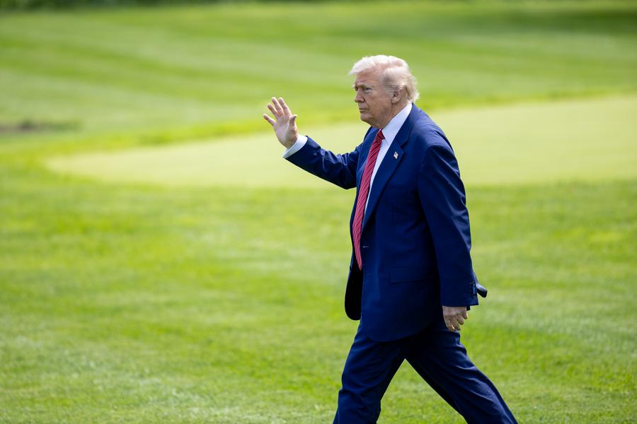 U.S. President Donald Trump walks to board Marine One at the White House in Washington, D.C., the United States, on May 23, 2025. (Xinhua/Hu Yousong)