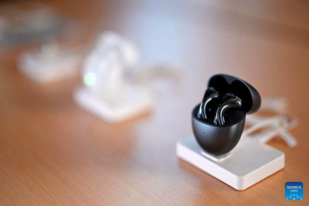 This photo shows newly-released Huawei FreeBuds 6 during a product launch event of Huawei in Mexico City, Mexico, May 21, 2025. Chinese tech giant Huawei on Wednesday launched its new line of products under the "Fashion Next" concept in Mexico's capital.
