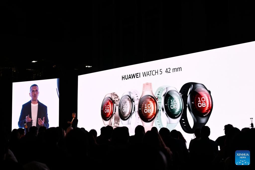 The launch included the Huawei Watch 5, Huawei Watch Fit 4, Huawei Watch Fit 4 Pro, Huawei FreeBuds 6 and the 12.2-inch Huawei MatePad Pro 2025. (Xinhua/Li Muzi)