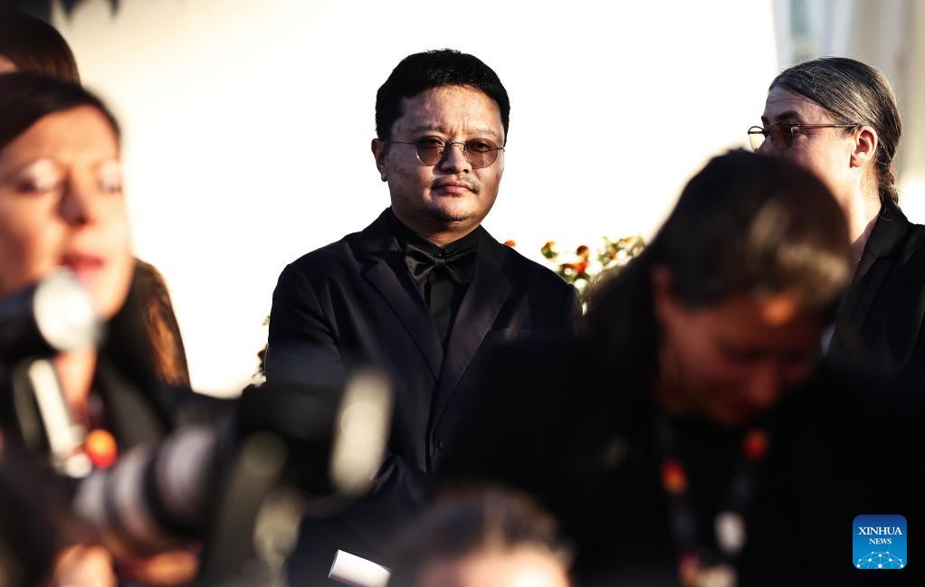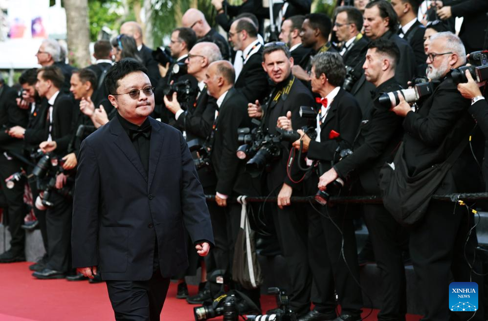 Chinese director Bi Gan walk at the red carpet of the closing ceremony of the 78th Cannes Film Festival in Cannes, France, May 24, 2025. Chinese director Bi Gan won on Saturday the Special Award at the 78th Cannes Film Festival for his epic fiction feature Resurrection, known in Chinese as Kuang Ye Shi Dai. Festival organizers introduced Resurrection as a work that showcases the continued evolution of Bi's creativity, while staying true to the sensory and poetic qualities that define his unique cinematic style. (Xinhua/Gao Jing)
