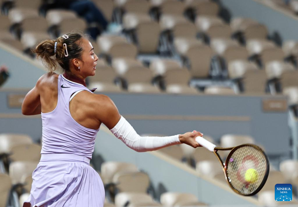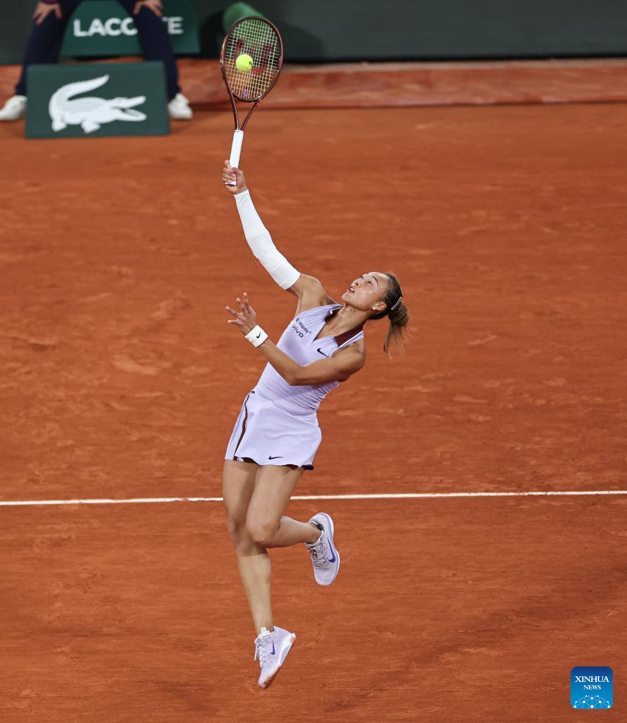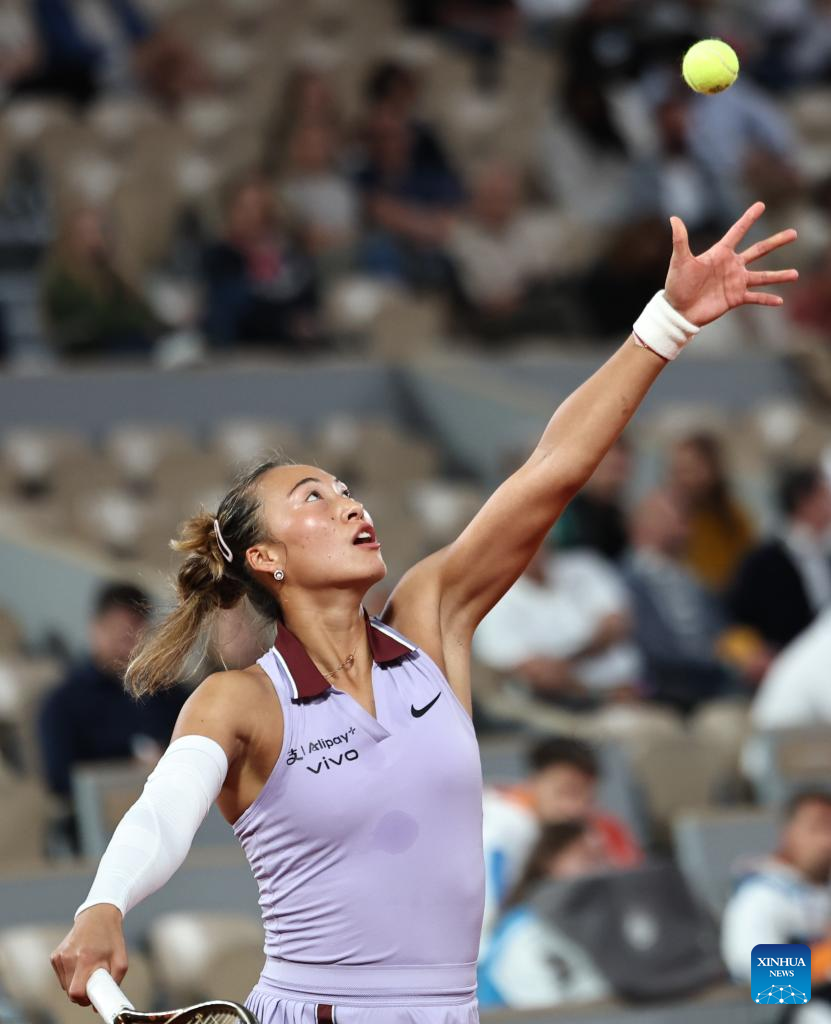 PARIS, May 25 (Xinhua) -- Olympic champion Zheng Qinwen of China defeated former French Open finalist Anastasia Pavlyuchenkova 6-4, 6-3 in the first round of the French Open on Sunday.