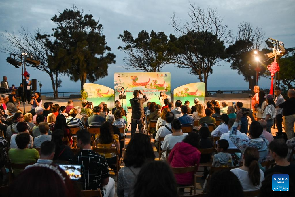 People watch a Chinese art performance in Zurrieq, Malta, May 24, 2025. A vibrant showcase of Chinese traditional arts, including music, dance, and puppetry, was held Saturday night in Zurrieq, western Malta, to celebrate the upcoming Chinese Dragon Boat Festival. (Photo by Jonathan Borg/Xinhua)