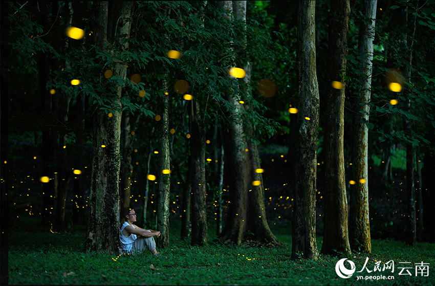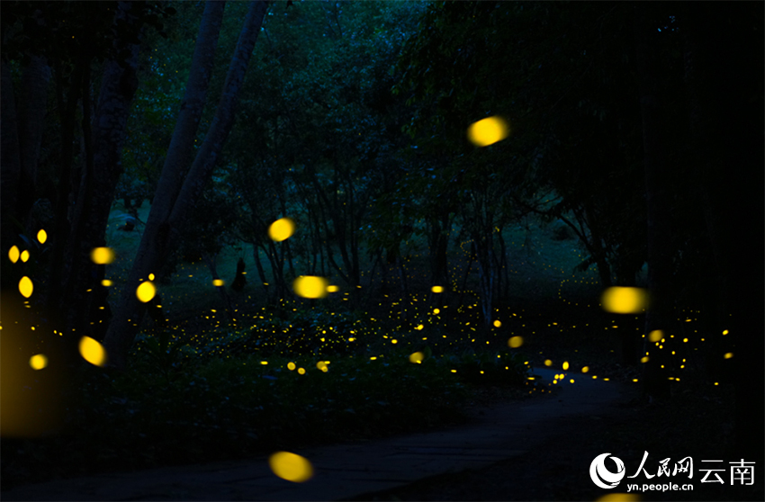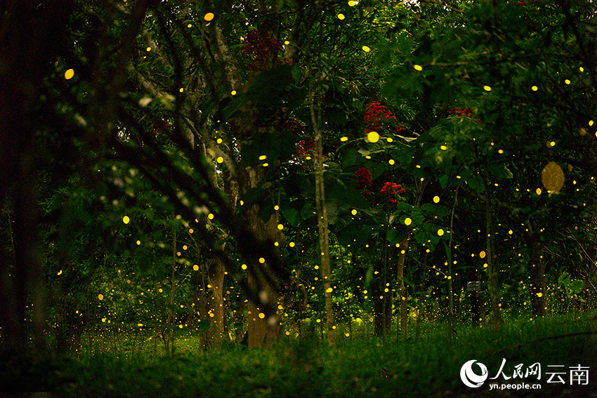 Fireflies at the Xishuangbanna Tropical Botanical Garden under the Chinese Academy of Sciences in southwest China's Yunnan Province have entered the peak viewing season. At night, thousands of fireflies dance in swarms among the trees, on the grass, and along the lakeshore, creating a fairytale-like atmosphere.