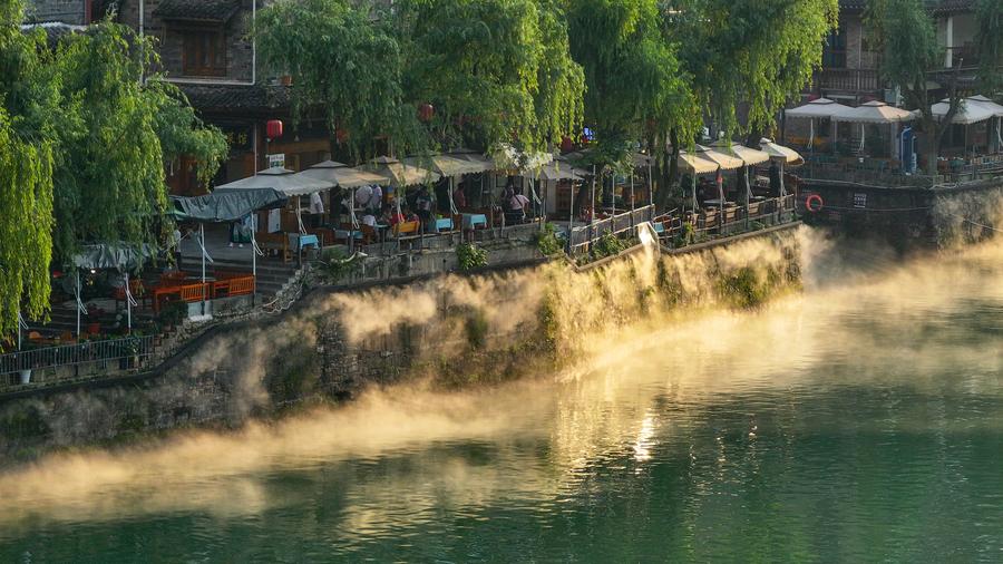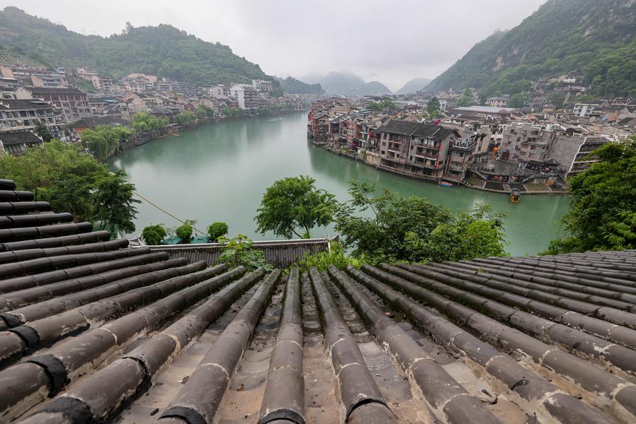 This photo shows a view of Zhenyuan ancient town in Qiandongnan Miao and Dong Autonomous Prefecture in southwest China's Guizhou Province, May 19, 2025. (Xinhua/Ou Dongqu)