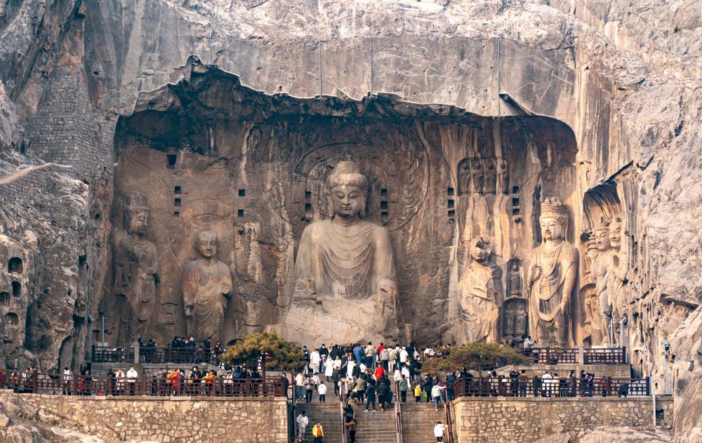 Tourists visit the Longmen Grottoes during the New Year holiday in Luoyang, central China's Henan Province, Jan. 2, 2023. (Photo by Liu Bing/Xinhua)
