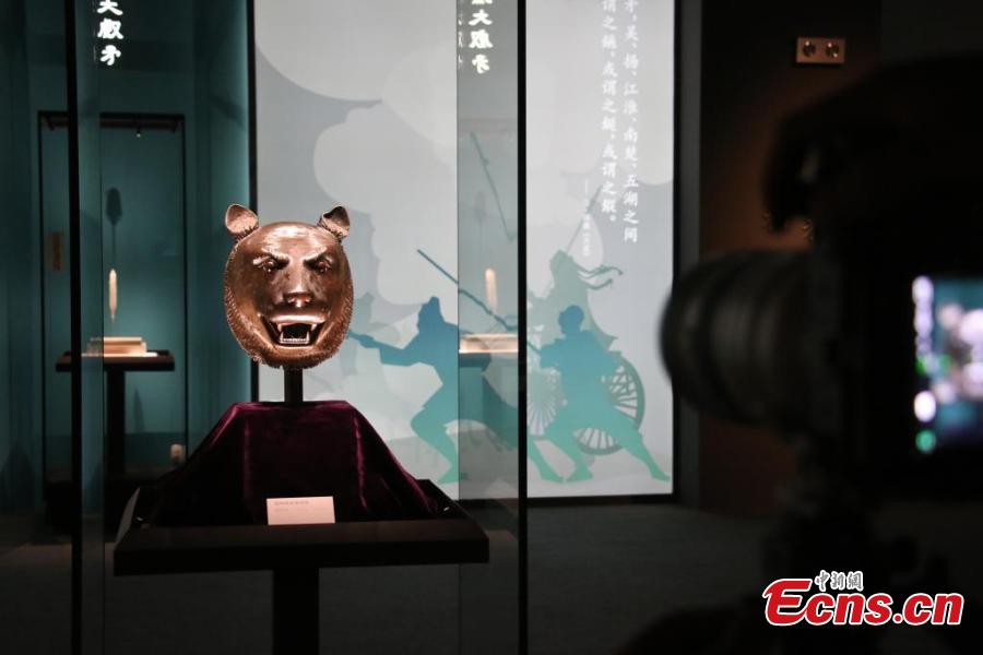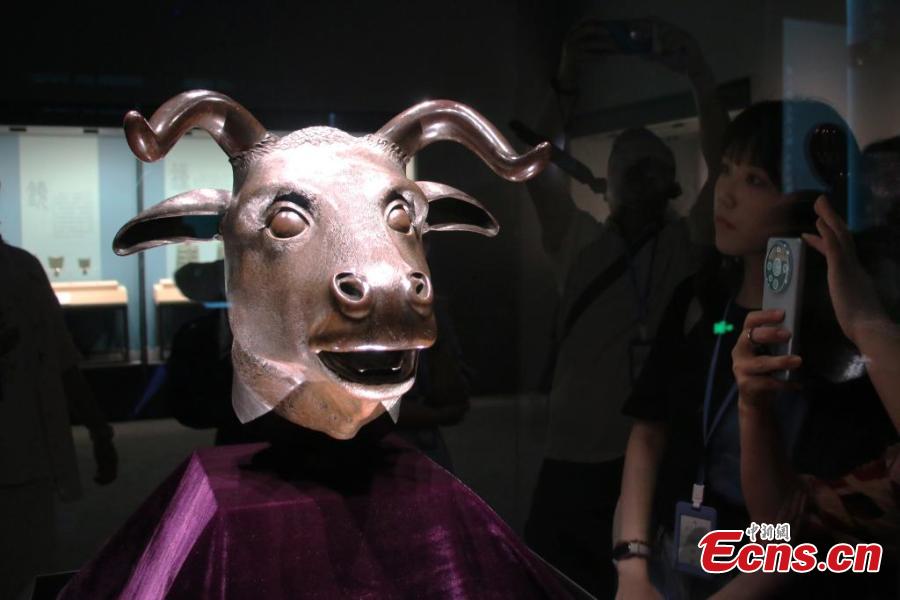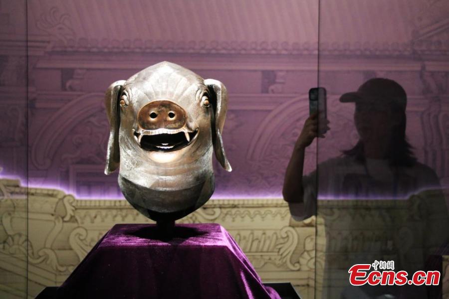 A bronze Chinese zodiac animal head originally belonging to the Old Summer Palace, is on display at Anhui Museum in Hefei, east China's Anhui Province, May 27, 2025. (China News Service/Zhang Qiang)