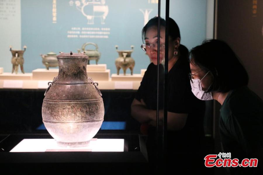 People view cultural relics at Anhui Museum in Hefei, east China's Anhui Province, May 27, 2025. (China News Service/Zhang Qiang)
