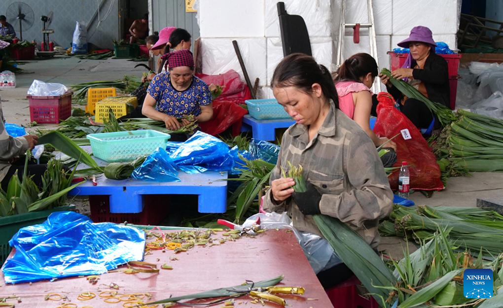 KUNMING, May 28 (Xinhua) -- A total of 8.8 tonnes of fresh Vietnamese zongzi leaves have streamed into processing workshops in southwest China's Yunnan Province ahead of this year's Dragon Boat Festival that falls on Saturday.