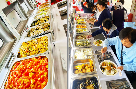 Photo shows a buffet aboard a tourist train for older travelers in China. (Photo courtesy of China Railway)