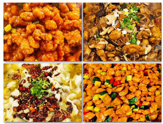 The buffet features a variety of regional specialties, including popular dishes such as sweet and sour pork, fried pork in scoop (known as Guobaorou), boiled spicy fish fillet, and Kung Pao chicken.