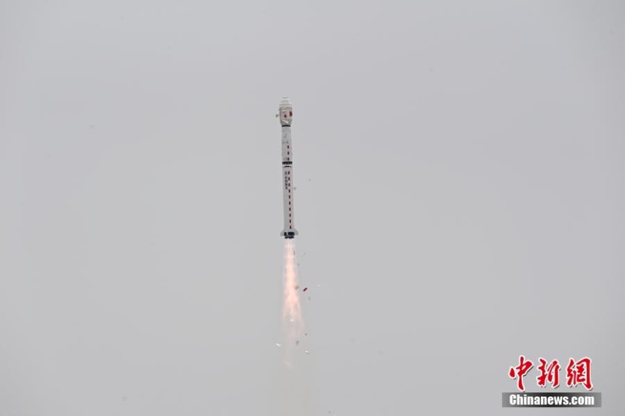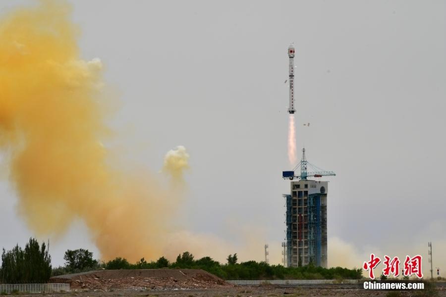 A Long March-4B carrier rocket carrying a new satellite, Shijian-26, blasts off from the Jiuquan Satellite Launch Center in northwest China on May 29, 2025. (China News Service/Wang Jiangbo)