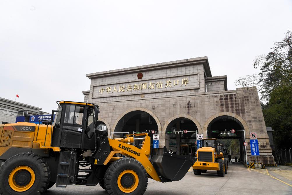 Loaders for export to Vietnam go through the port of the Friendship Pass in Pingxiang, south China's Guangxi Zhuang Autonomous Region, March 17, 2025. (Xinhua/Cao Yiming)