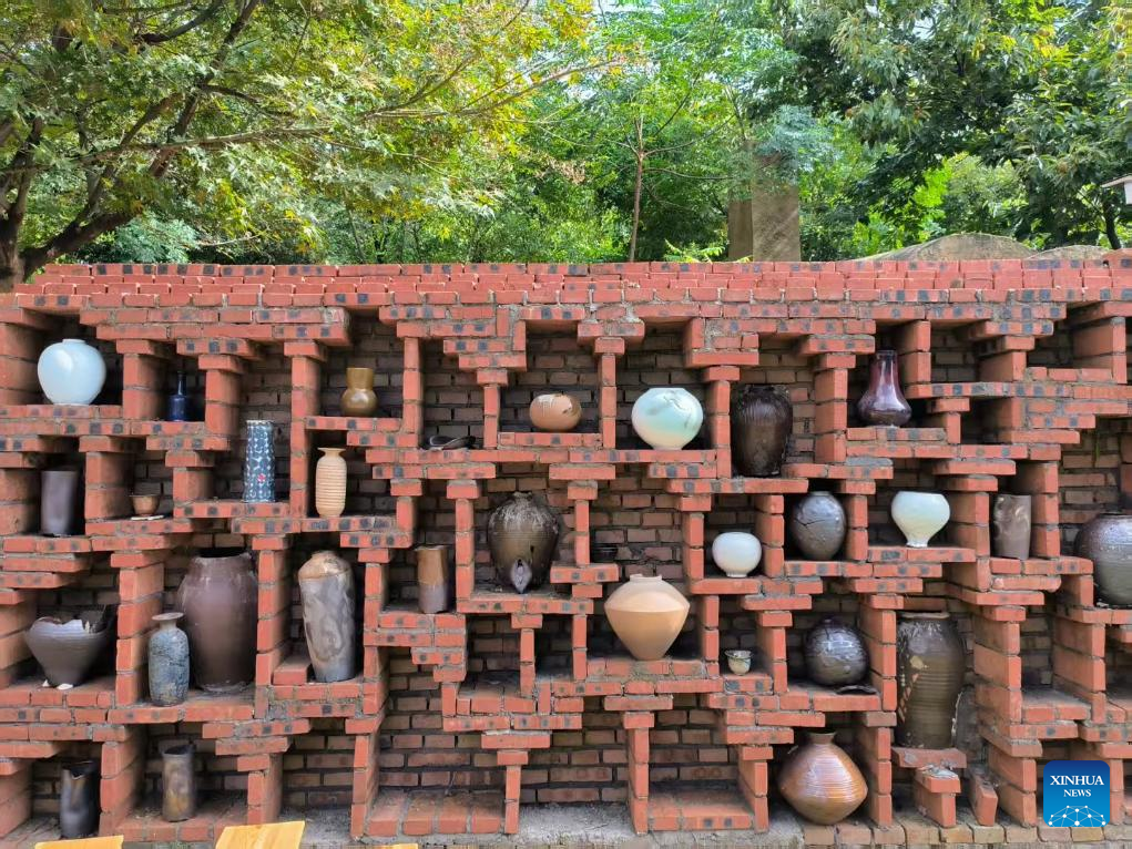 Some ceramic works made in the Dragon Kiln are on display in Yixing, east China's Jiangsu Province, May 22, 2025. (Xinhua/He Leijing)