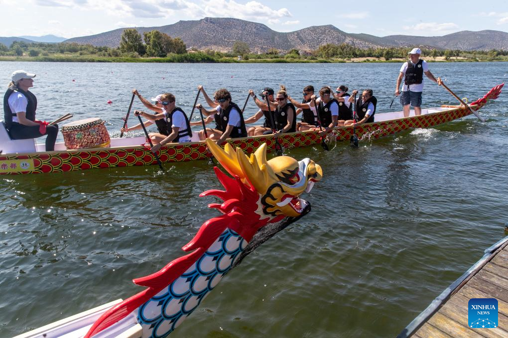 ATHENS, June 1 (Xinhua) -- Hundreds of spectators gathered at the Olympic Rowing Center in Schinias, northeast of Athens, on Sunday to witness a vibrant dragon boat race held in celebration of the Dragon Boat Festival and the deepening ties between China and Greece.