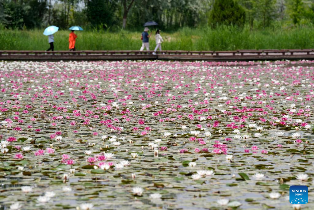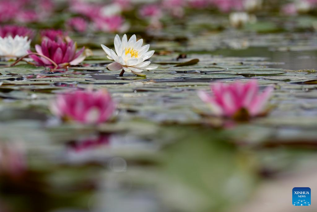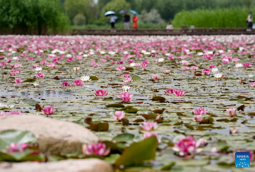 This photo taken on June 1, 2025 shows a view of the water lilies at China Flower Expo Park in Yinchuan, northwest China's Ningxia Hui Autonomous Region. (Xinhua/Wang Peng)