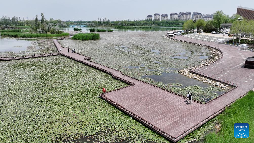 This aerial drone photo taken on June 1, 2025 shows a view of the water lilies at China Flower Expo Park in Yinchuan, northwest China's Ningxia Hui Autonomous Region. (Xinhua/Wang Peng)