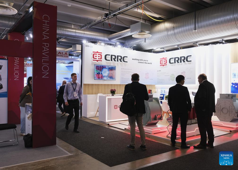 People visit the China Pavilion at Nor-Shipping 2025 in Lillestrom, Norway, on June 3, 2025. A Norwegian official has praised the green technologies and innovative solutions showcased by Chinese companies at Nor-Shipping 2025, expressing hope for enhanced maritime cooperation between Norway and China. (Xinhua/Zhang Yuliang)