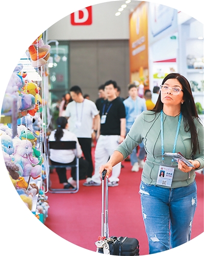 Photo shows a foreign buyer exploring the toy exhibition area at the 137th China Import and Export Fair in Guangzhou, south China's Guangdong Province. (Xinhua/Wang Ruiping)