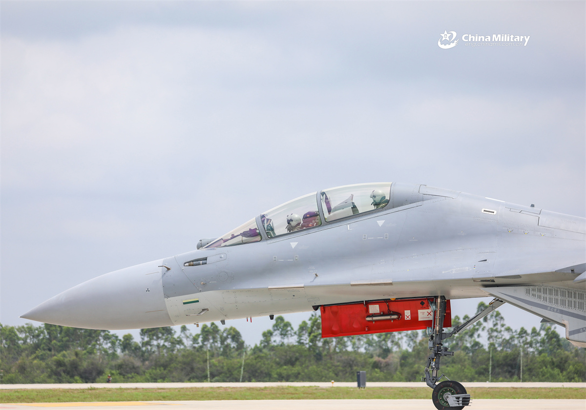 A J-16 fighter jet attached to an aviation brigade of the air force under the Chinese PLA Southern Theater Command taxis on the runway before taking off for a multi-subject flight training exercise in late May 2025. (eng.chinamil.com.cn/Wang Xinwei)