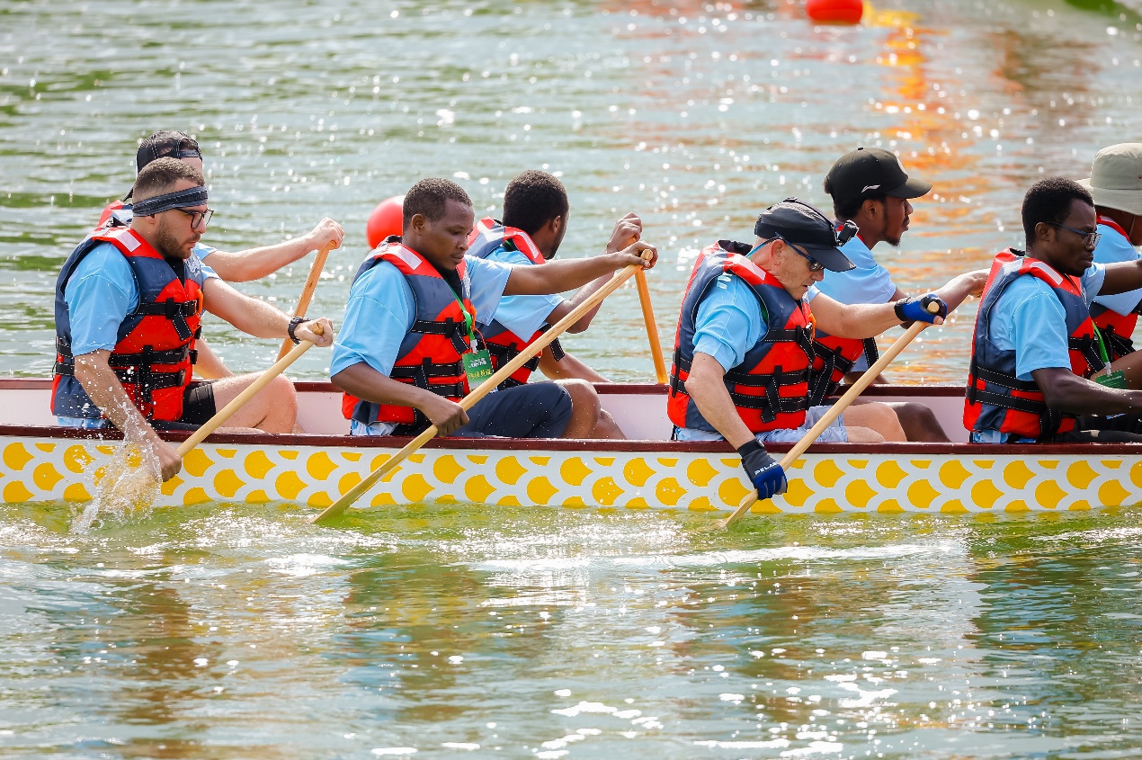 International participants row a dragon boat. (Photo courtesy of the organizer)
