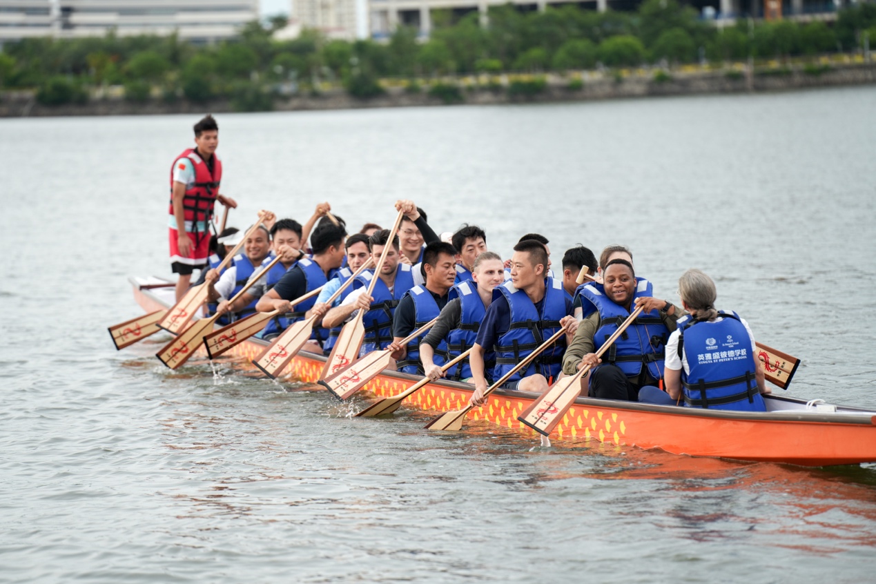 "Dragon boat racing is a traditional Chinese sport that embodies unity, perseverance and progress. Our school hopes faculty members from diverse cultural backgrounds will experience the charm of traditional Chinese culture while demonstrating our multicultural integration," said Yang Yuli, executive principal of the school.