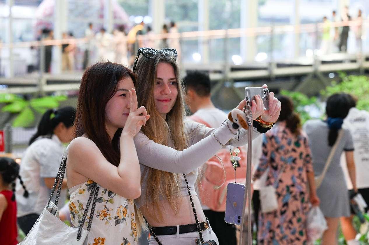 Tourists pose for a picture at a shopping center in southwest China's Chongqing municipality. (Photo by Wang Jiaxi/People's Daily Online)