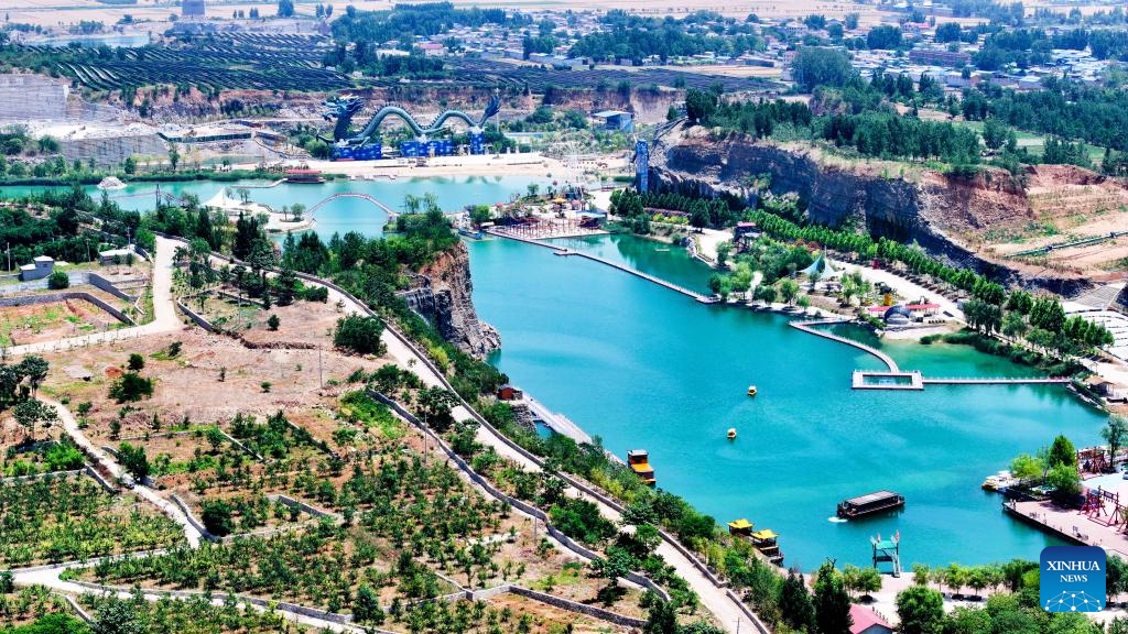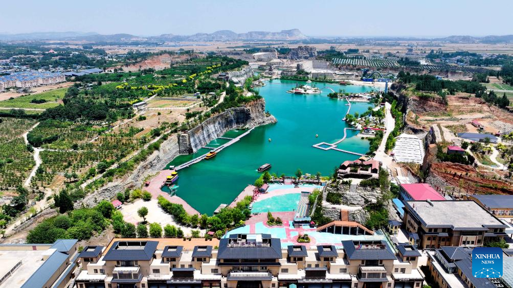 An aerial drone photo shows a view of the Qinglong Mountain resort in Hetaoyuan Town of Juye County, east China's Shandong Province, June 4, 2025.