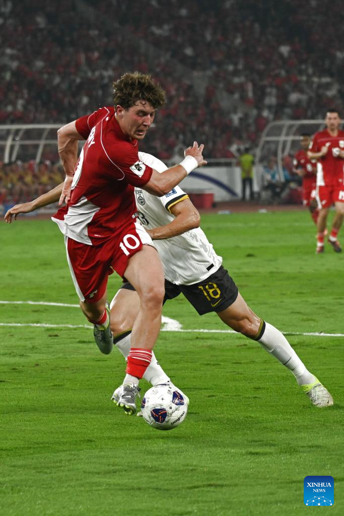 Ole Lennard Romenij (L) of Indonesia competes during the 2026 FIFA World Cup Asian Qualifiers Group C match between China and Indonesia in Jakarta, Indonesia, June 5, 2025. (Xinhua/Jia Haocheng)
