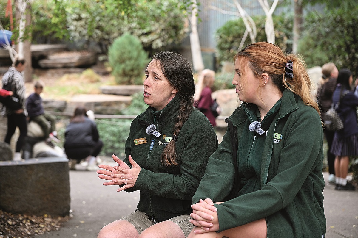 Giant panda keepers Arliah Hayward (left) and Jemma Cleere are interviewed by China Daily. (Xin Xin/China Daily)