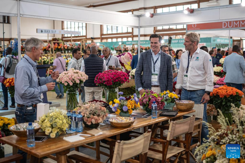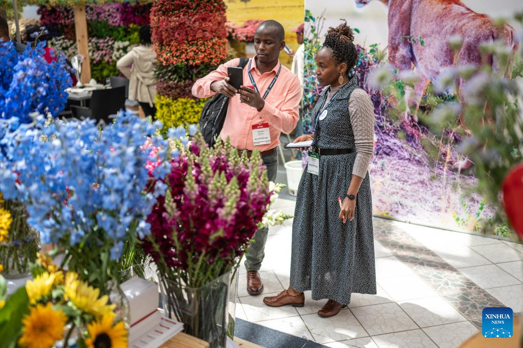 People visit the International Floriculture Trade Expo 2025 in Nairobi, Kenya, June 5, 2025. The expo opened in Nairobi, the capital of Kenya, on Tuesday with calls to curb carbon emissions.