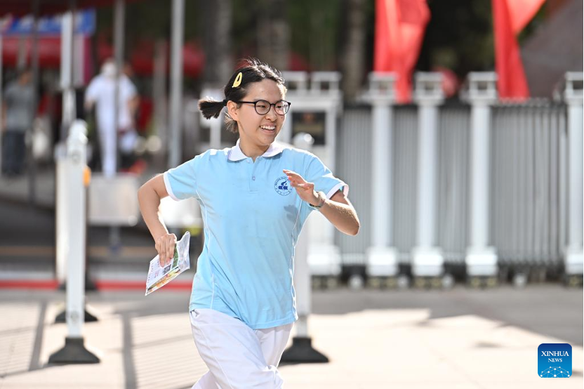 An examinee runs out of an exam site in Beijing, capital of China, June 10, 2023. (Xinhua/Li Xin)