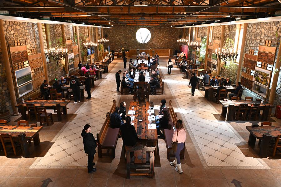 Tourists taste wine at a winery in Yinchuan, northwest China's Ningxia Hui Autonomous Region, Oct. 23, 2024. (Xinhua/Mao Zhu)